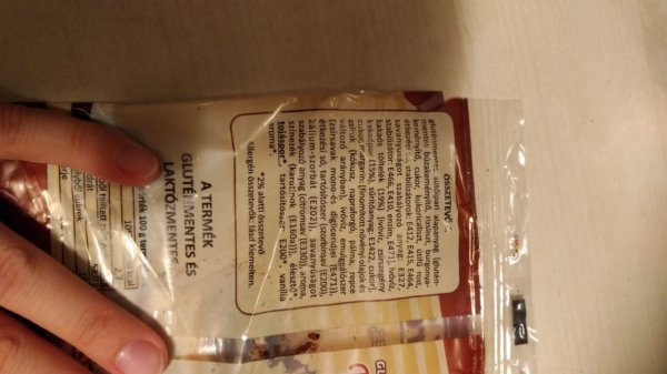 Még munka kezdés előtt megettem a kakaós tekercset. A legőszintébben megmondva – mert minek is hazudnék itt, magamnak 😉 – nem jött be. Száraz volt nagyon. Ráadásul az összetevőit elnézve a középiskolai kémialaborban nem volt ennyi szer, mint amit ebbe a kis tekercsbe belesütöttek.